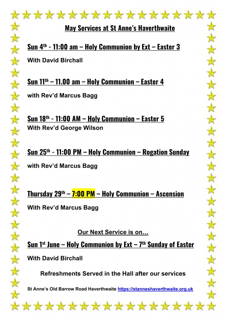 Please come and visit St Anne’s, children are welcome and when we know they are coming we try to involve them in the service in some way, we also keep a small amount of toys for the toddlers and young people to play with.